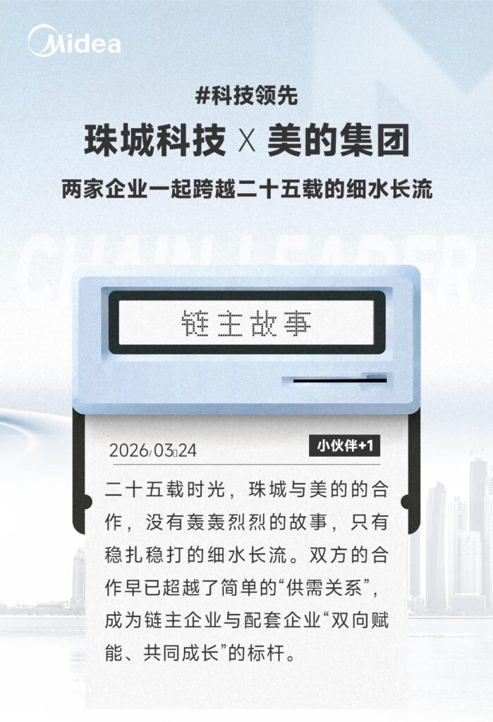 在這個樣本中,美的履行“鏈主”責任,通過技術輸出、管理賦能帶動伙伴成長;珠城則通過持續創新、深度綁定,成為美的不可或缺的左膀右臂。未來,隨著美的向全球科技集團邁進,珠城還將在更廣闊賽道續寫這段細水長流的故事。